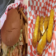 Blue Cheese Burger with Fried Okra